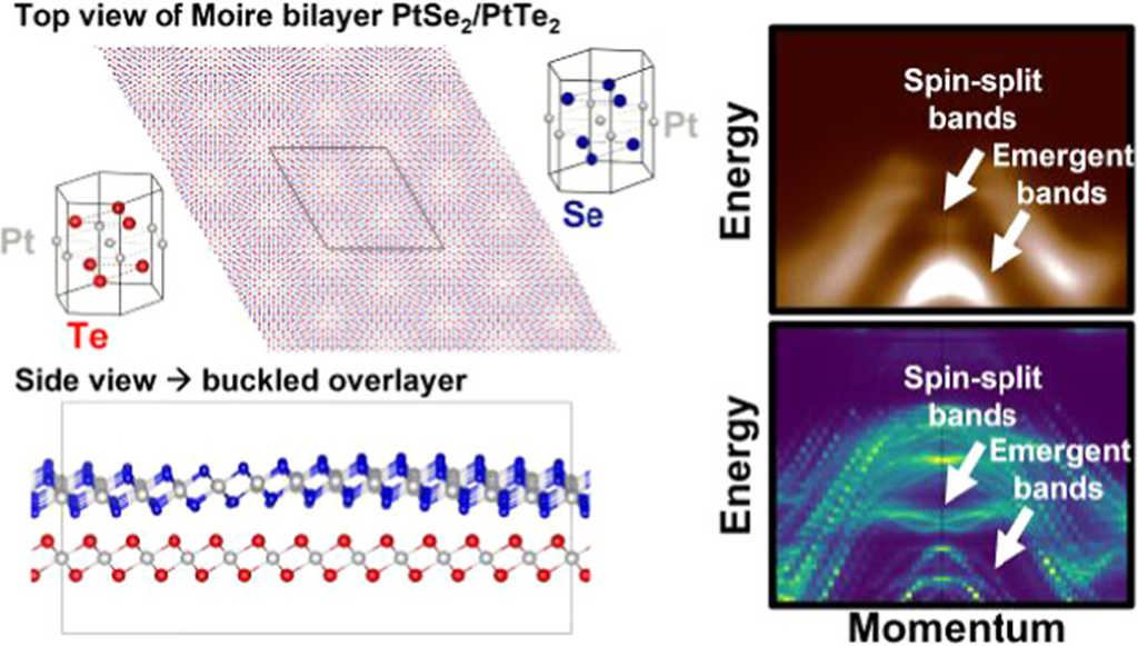 凡德瓦異質結構,由於材料可逼近原子尺度,因此在凝態物理學群極受注目。由於界面間沒有鍵結,凡德瓦異質結構界面間仍會透過如莫瑞週期調製、電荷重新分配、以及電子軌域的混層導致能帶結構的變化以及調製界面耦合的強弱。於本研究中,林孟凱的團隊透過分子束磊晶技術成功成長出單層PtSe2/PtTe2異質接面,並運用角解析光電子能譜技術證實了此凡德瓦異質接面的耦合特性。除實驗發現,林孟凱的實驗團隊亦協同台灣大學周至品教授團隊進行第一原理計算,研究更深入的物理機制。藉由實驗及理論比對,得知此異質結構會透過界面交互作用,使得PtSe2產生曲折而破壞晶體對稱性,進一步導致自旋能帶分裂;此外,莫瑞週期中特定的局域電子態,會產生靠近費米能階的「平帶」結構,意味著部分的價電子產生了局域性。此研究結果解釋了凡德瓦二維系統的界面交互作用機制,並說明了界面交互作用如何影響能帶結構的分布,提供了凡德瓦二維系統在低維度下的應用可能性。