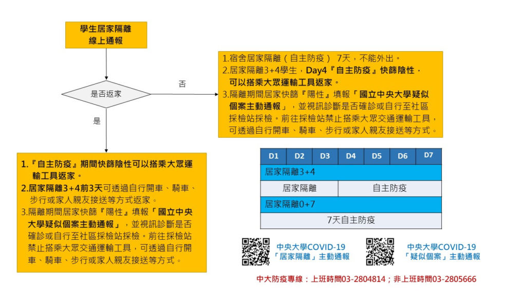 )教職員工生如確診或被匡列居家隔離,請務必線上通報校方:
